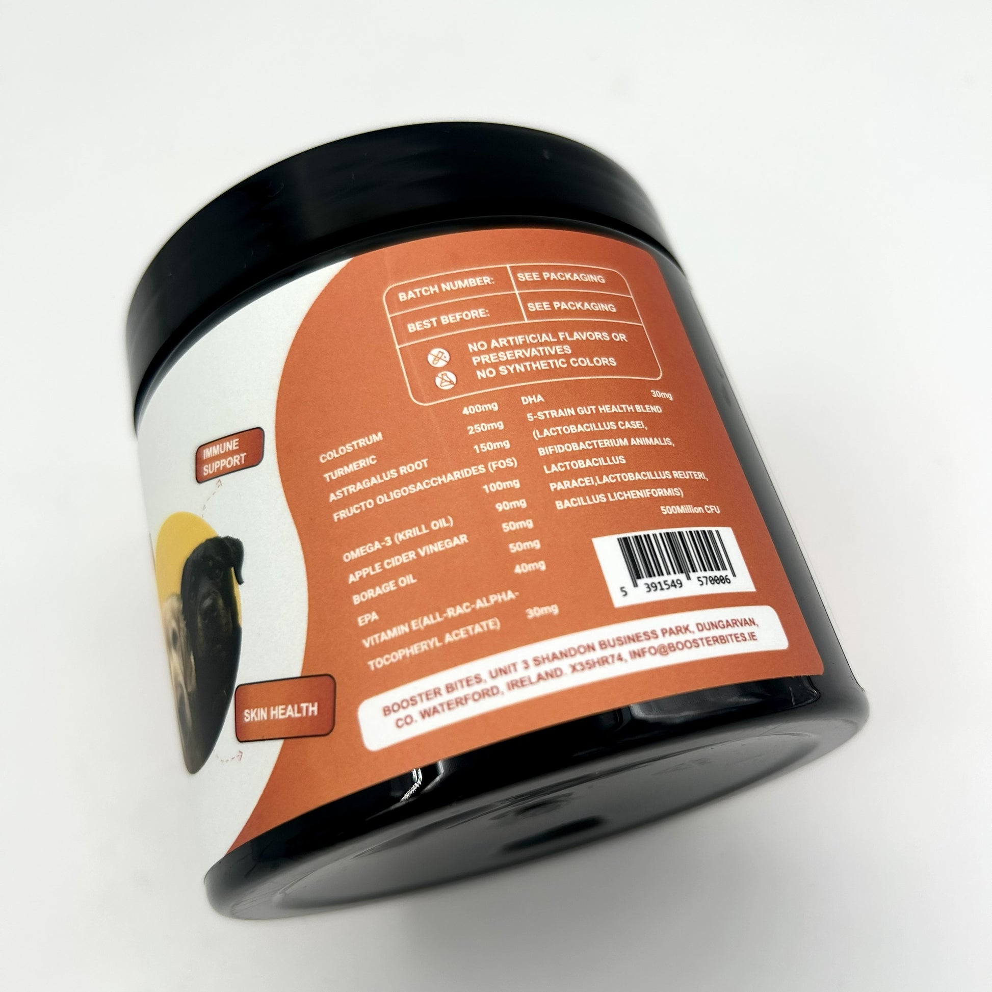Watching your dog deal with itching, scratching, and discomfort can be tough. Booster Bites: Allergy Relief are functional, tasty treats formulated with a blend of key ingredients designed to help support your dog's skin health and immune system, potentially offering relief from common allergy symptoms.
