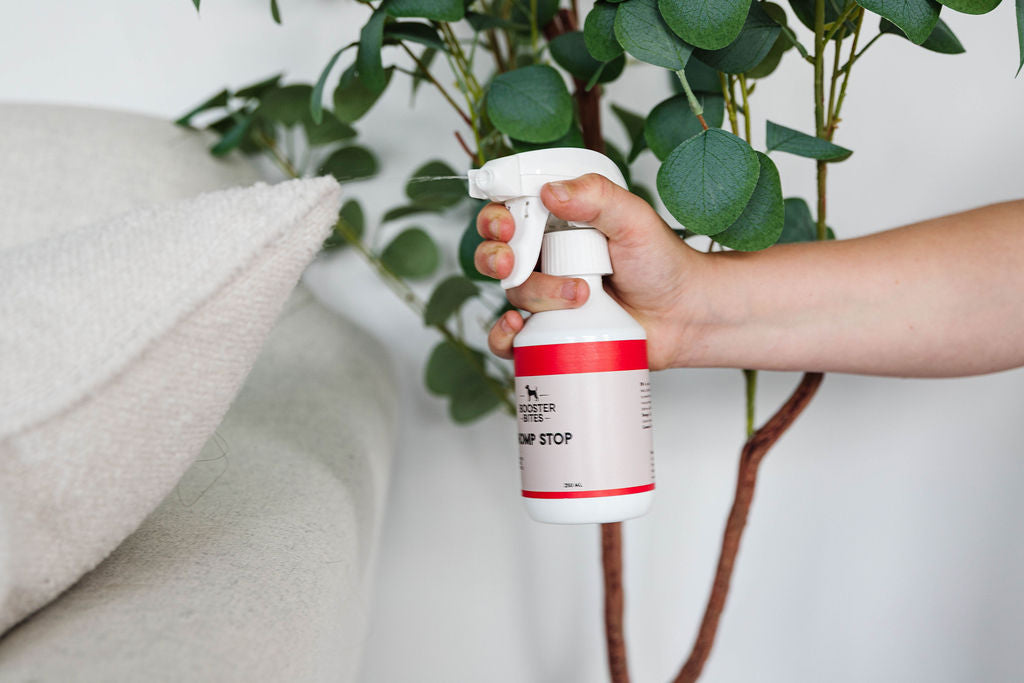 Chewing is a natural behaviour for dogs, but when it’s your furniture, shoes, or soft furnishings, it can be frustrating. Booster Bites Chomp Stomp is a safe, non-toxic bitter spray designed to discourage destructive chewing and protect your home.